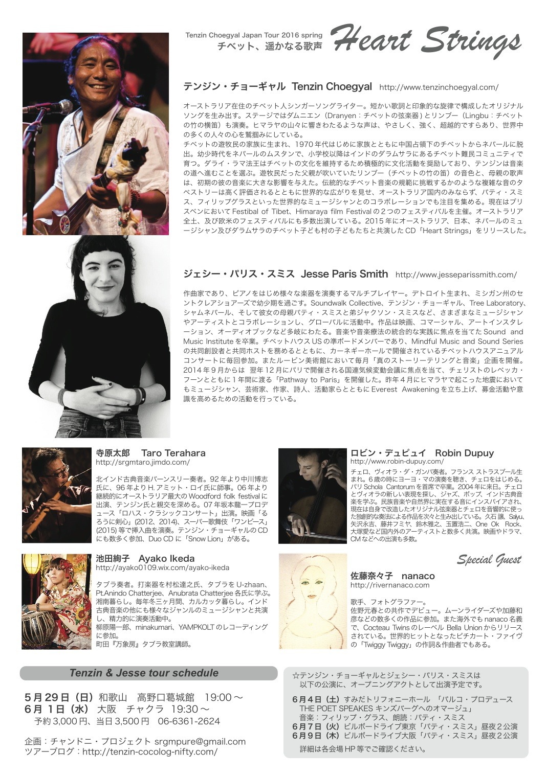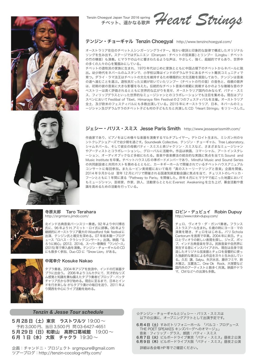 【出演】Tenzin Choegyal(Vo,Dranyen)、Jesse Paris Smith(P)、寺原太郎(bansuri)、Robin Dupuy(Cello) 、池田絢子(タブラ)