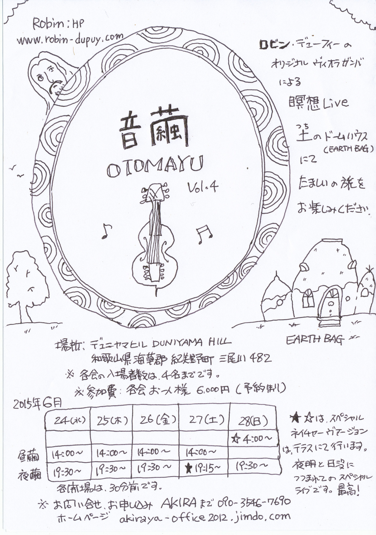 日時: 2015 年 6 月 24 日(水)〜28日(日)(アースバッグにて)
